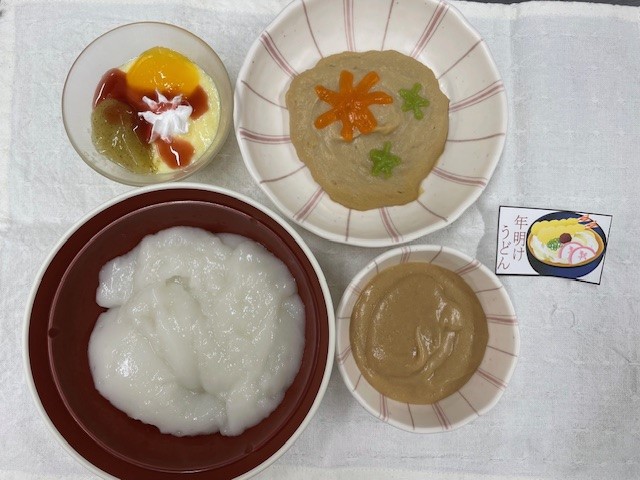 ソフト食とミキサー食も、型抜きや花のイラストなどで見た目も華やかなるよう工夫しており、