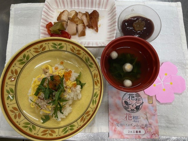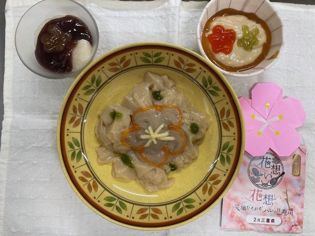 デザートには、三重県で栽培が盛んな梅を使った寒天ゼリーを飾りました。